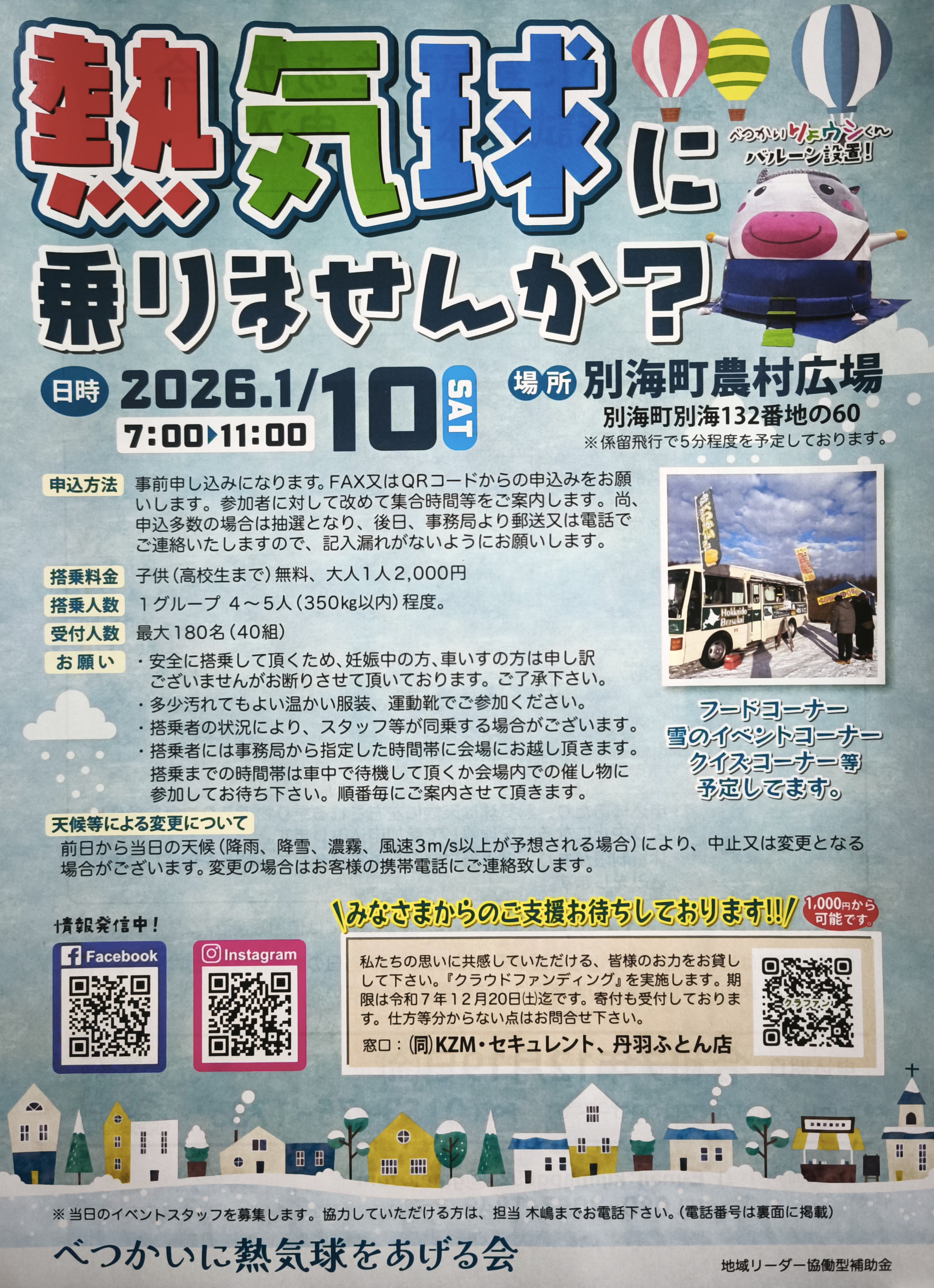 別海町を中心に開催されるイベント情報を、毎週月曜日に更新しています!